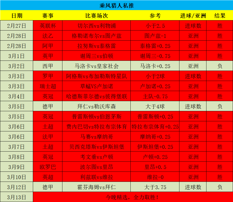 私推8胜7+17胜14!长线还是比较出色,昨日私推德甲拜仁场,进球多次被吹,遗憾未能打出进球数大,今日赛事较多,英超德甲等焦点大战!精选信心赛事,力争全胜起飞,兄弟们抓紧一起冲!