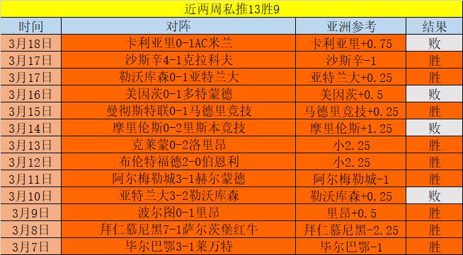 昨天私推遗憾失利,卡利亚里在比赛过程中并不弱于AC米兰,可惜破门机会把握不好,遗憾失利。今晚支羽会继续努力,冲击胜利。