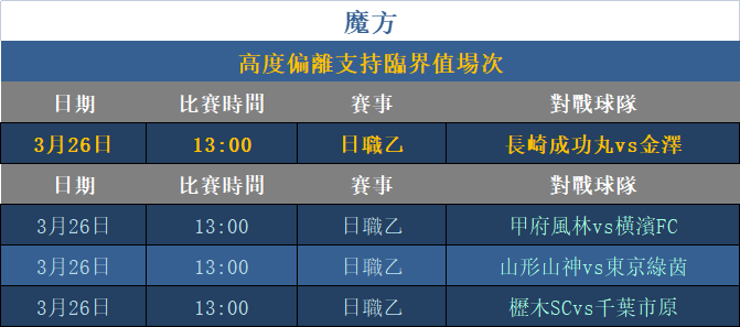 利用「魔方關系」進行支持趨勢預測分析(所有數據均結合中國競彩(主)、亞歐數據作為分析體系),超越臨界數值之上可視為低機率方向,此方式對比賽方向分析有顯著幫助效果。