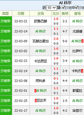 1、Al 科尔的班底并不深厚,本赛季升入沙地甲后,他们也处在平庸的局面当中,在联赛战罢了29轮之后,球队拿到了10胜8平11负的成绩,以38分的积分排名积分榜第11。