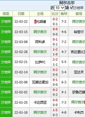 数据参考:阿尔吉尔 受让平半(中国竞彩参考:客胜)