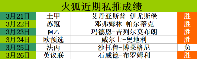 昨天赛事较少,稳妥起见,火狐暂停了一天的临场推送,近6场精选取胜5场,今天精彩继续!