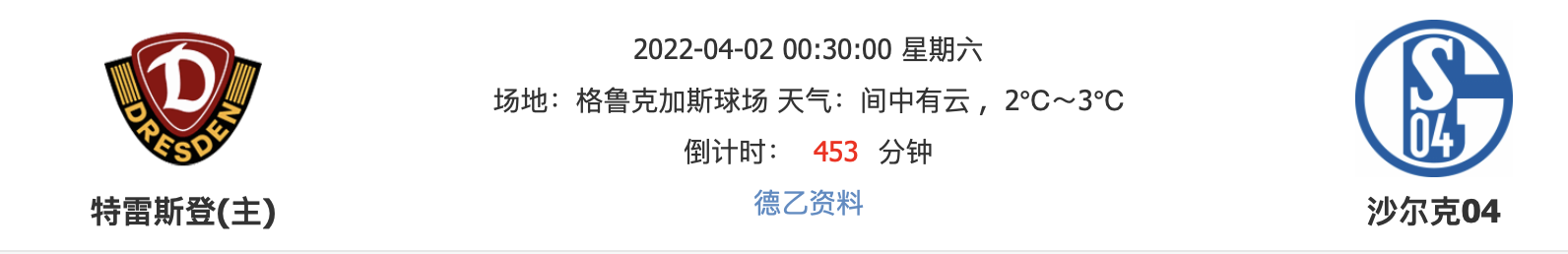 北京时间2022年04月02日00点30分,特雷斯登能否捍卫主场?沙尔克04志在3分能否如愿?3分到底花落谁家?