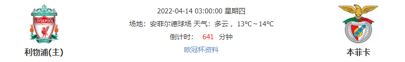 北京时间4月14日的凌晨3点00分,欧冠杯赛事的1/4决赛的次回合即将继续火热上演——其中英超豪门利物浦将会坐镇安菲尔德球场迎来葡超劲旅本菲卡的挑战!首回合客场3-1大胜对手的红军能否在回归主场之后延续状态强势晋级?还是上轮联赛大胜重返胜轨的本菲卡能够在逆境中绝处逢生上演奇迹翻盘?下面将由Yoyo姐将为大家带来详细的赛事分析: