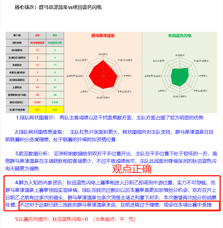 精彩分享:微函昨日早场亚洲比赛成绩大捷,日职乙、韩K2联、澳洲甲比赛顺利拿下,其中作为核心赛事的日职乙群马草津温泉vs秋田蓝色闪电比赛虽然以平手位置开出,不过追赶进度的客队以更为积极的进攻攻势拿下主队到三分。周日微函早场以3战3胜的成绩得到了状态迅速的回归!对于亚洲比赛微函找到了全新的方向并成功得到验证!微函球道升级全新改版,五大核心技术精湛分析球队情况,利用读取球队真实基本面展示球队网状图、网状态反馈内容读取、欧亚数据变动来龙去脉拆解、鲜为人知球队恩怨情仇内参资讯、清晰的微函球道比赛方向观点提供。每项内容均为经验累积总结所得,行内独创,行内领先,比赛方向更为清晰可见。