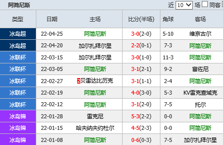 1、阿简尼斯在冰岛超联赛中的实力也不突出,上赛季他们以6胜3平13负的成绩排名联赛第9位,以1分的微弱优势惊险保级。