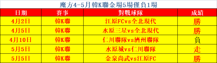 魔方韓K聯金場4-5月成績不俗,5場僅失1場。魔方將繼續努力,追求精益求精。