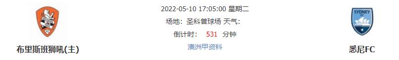 北京时间2022年05月10日17:05,澳洲甲第26轮的争夺,由布里斯班狮吼坐镇主场迎战悉尼FC,布里斯班狮吼过去8次面对悉尼FC未曾有过胜绩,而本赛季首循环客场1-1战平了悉尼FC,那么本轮回到主场,布里斯班狮吼还能否再次全身而退?