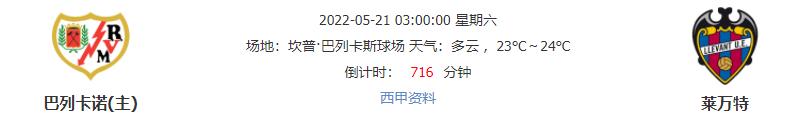 北京时间2022年5月21日03:00,西甲联赛迎来收官之战,巴列卡诺主场对战莱万特,巴列卡诺最近遭遇连败打击,此番主场面对实力一般的莱万特,巴列卡诺能否顺利捍卫主场?