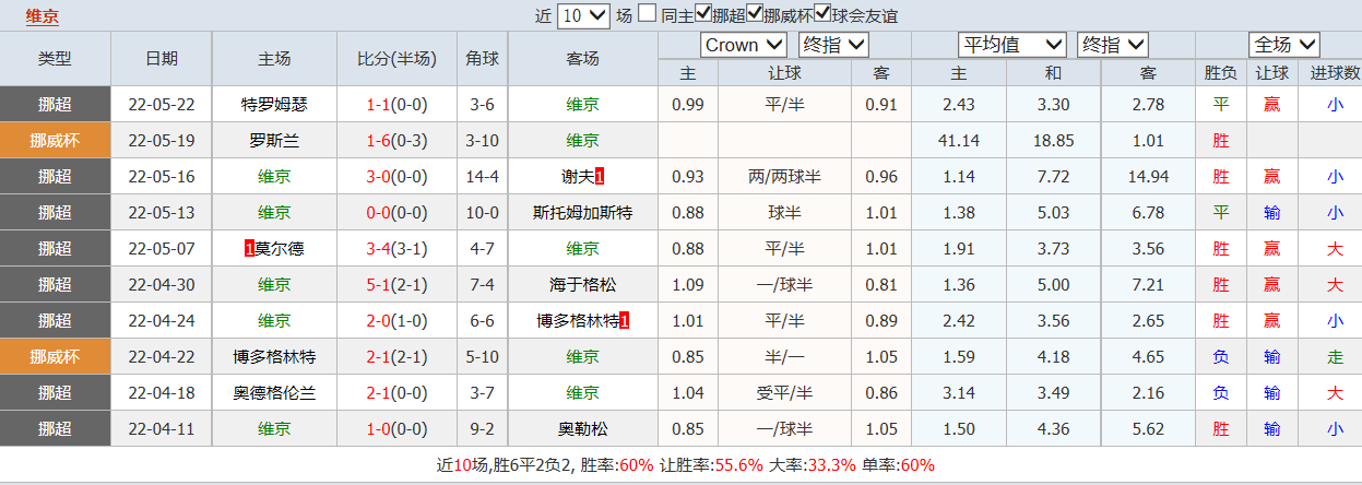 维京作为较强实力的球队,球队本赛季的发挥尚可,尤其是主场极为出色,实力面较强,本赛季联赛赛事取得6胜2平1负的成绩,成绩排名第2。维京上场联赛对阵特罗姆瑟,球队场上占据优势,并在下半场73分钟破门领先,不过末端却未能保持住,遗憾被对手1-1打平,未能全取三分,好在此次回到主场了。