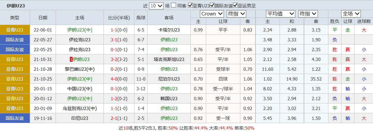 而伊朗U23的实力较强,球队的状态2场未能取胜了,士气有下滑,不过近期取得5胜2平3负的成绩,打入16球,失11球,整体的能力还是强势较多。伊朗U23上场面对卡塔尔U23,双方实力都比较不错,伊朗U23占据场上优势,不过对手却在末端率先进球,不过好在最后阶段,伊朗U23能够1-1战平对手。