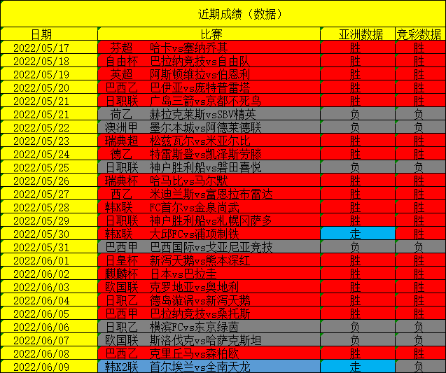昨日精选一场 韩K2联 首尔埃兰vs全南天龙亚洲数据走,近23胜17!胜率高达72.9%!表现强势!!!回顾昨日比赛,首尔埃兰打法较为保守,球队本场比赛连续主场作战,全南天龙客场近期后防有所下滑,双方上半场战至1-1平,下半场无任何建树战至1-1战平。