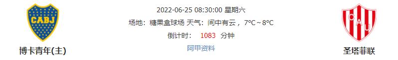 北京时间2022年06月25日08:30,阿甲联赛第二阶段第5轮的较量,由博卡青年坐镇主场迎战圣塔菲联,博卡青年上轮联赛客场斩获胜仗,近期联赛2连胜,状态正佳,本轮主场能否延续胜绩?圣塔菲联上轮联赛主场遭遇失利,本轮作客还能否有作为?