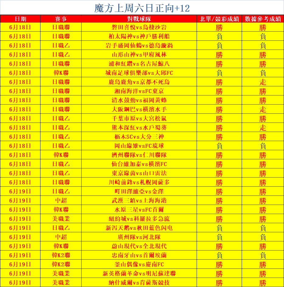 魔方昨日4場金場盡數拿下!上周六日兩天打出正向+12的好成績!近幾天狀態稍有回落,但近13天整體成績勝場達到43場,正向+15,保持穩定。魔方將繼續努力,追求精益求精。