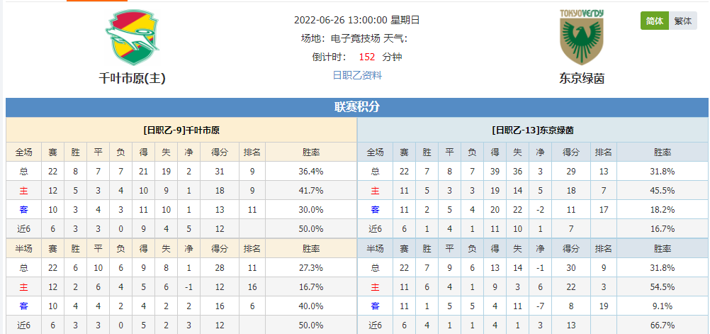 北京时间06月26日13:00,日职乙第23轮比赛,千叶市原vs东京绿茵,两队近期联赛表现都较为出色,今天比赛主队能否在主场优势下再拿下胜利?
