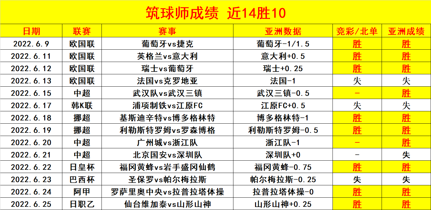 2连胜!昨天上一场与大伙分享了日职乙比赛,仙台维加泰vs山形山神,送出了山形山神+0.25方向,最终以1-1的比分拿下胜利,竞彩、数据双双拿下;整体成绩还算不错的,亚洲成绩近14场比赛,有10场取得胜利。而近期成绩同样取得6胜2失。今天继续为大伙分享一场日职乙的比赛,千叶市原vs东京绿茵,希望能通过筑球师的努力在接下来的日子里能与大家分享更多更好的赛事,有望各位多多支持!