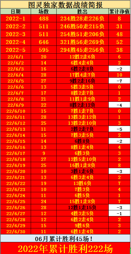 近期英冠的表现出色,近99胜60,打出率高达61%!哥伦甲新赛季的表现是非常不错,近172胜120,打出率高达70%!法乙近94胜65,打出率高达69%!日职联新赛季近111胜69,打出率高达62%!亚洲预选近18胜12,打出率高达67%!英甲近87胜57,打出率高达66%!俄超近25胜17,打出率高达68%!南球杯近47胜31,打出率高达66%!巴西乙近106胜71,打出率高达67%!爱超近36胜23,打出率高达64%!非洲杯近25胜16,打出率高达64%!中超近48胜29,打出率达60%!(以上数据均自2022年1月1日至今)