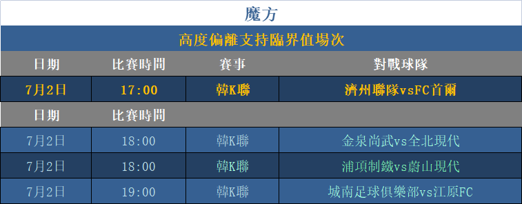 魔方近兩個周六周日均打出高正值,近兩周的周末周日整體正向+16!周六周日賽事較多,而對于假日的高度偏離數據捕捉魔方更爲精准。今天繼續主打日韓賽事。魔方將繼續努力,追求精益求精。