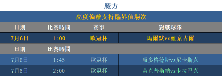 利用「魔方關系」進行支持趨勢預測分析(所有數據均結合中國競彩(主)、亞歐數據作為分析體系),超越臨界數值之上可視為低機率方向,此方式對比賽方向分析有顯著幫助效果。