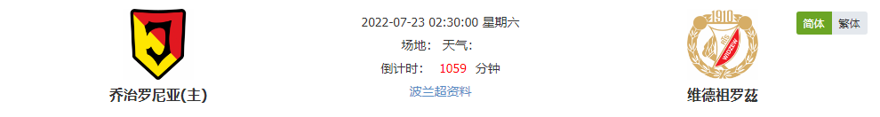 看点:乔治罗尼亚上一场比赛主场2-0战胜皮亚斯特,本场连续主场作战能否取胜?维德祖罗兹上一场客场不敌沙斯辛,此役连续作客能否全身而退?