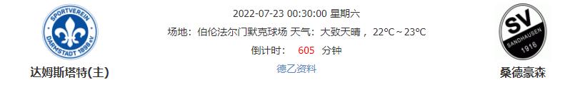 北京时间7月23日00:30,德乙的一场焦点比赛,达姆斯塔特vs桑德豪森,达姆斯塔特过去4次面对桑德豪森保持不败,且取得2次胜绩,优势明显,此役主场面对近期状态不俗的桑德豪森,达姆斯塔特能否顺利捍卫主场?