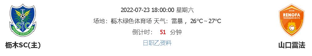 北京时间2022年7月23日18:00,日职乙联赛2022赛季28轮比赛,两支中下游球队的抢分大战,由枥木SC主场迎战山口雷法,两队距离降级区的岩手盛冈仙鹤都是只有4分的优势,联赛尚余15场比赛保级形势尚未明朗,此战谁能从对方手上抢的分数?待大虎为大家详细分析。
