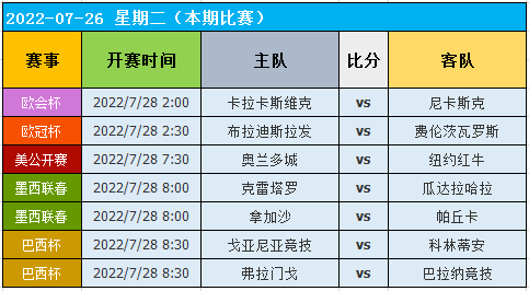昨天数据整体表现一般,晚场的6场有3场顺利打出,夜场的9场有5场顺利打出!昨天数据中,早场的韩K2联表现惊人,2场完美拿下数据,非常的出色!而欧冠的表现则是比较低迷,3场全部未能打出,非常的无奈!赛后笔者也认真的复查了比赛,也找到了根源!夜场的表现不错,其中巴西乙的表现依旧出色,数据完美拿下,当然哥伦甲的表现也是非常的出色,客队完美拿下数据,非常的给力!而墨西联的表现则是不错,5场有3场顺利打出,非常的不错!目前数据得走势非常的不错,7月目前拿到净增+54!2022年度整体拿下胜利+276!
