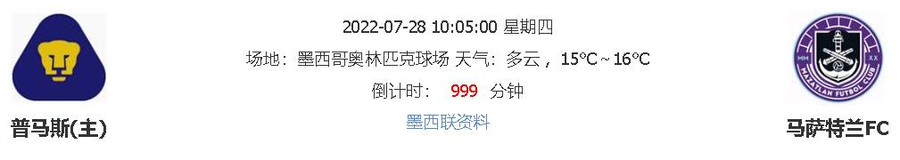 北京时间2022年7月28日10:05,墨西哥联赛春季联赛2022-2023第5轮比赛,普马斯vs马萨特兰FC,普马斯目前是新赛季未获败绩的两支球队之一,本次主场表现预期强势,仍未摆脱联赛倒数的马萨特兰FC能否逆势翻身争取作客反弹?待大虎为大家详细分析。