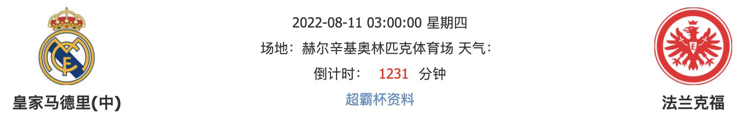 北京时间8月11日03点00分,欧洲超级杯的一场焦点之战,皇马将在中立迎战法兰克福。法兰克福实力落在下风,到底要如何应对?