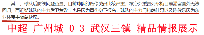 今天为大家提供的是焦点战:武汉三振vs北京国安,这场比赛灵通哥已经搜集到这场比赛的伤停等关键情报,欢迎大家关注了解。