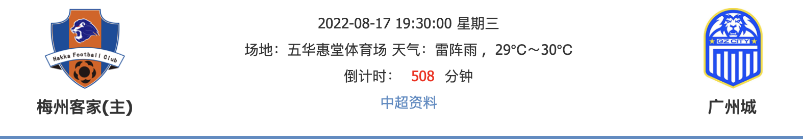 北京时间2022年08月17日19点30分,梅州客家本场能否捍卫主场如愿以偿?广州城能反客为主吗?
