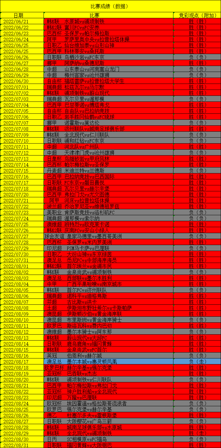 昨日精选一场日职联 福冈黄蜂vs大阪钢巴顺利打出!近70胜47!近两个月胜率高达67.1%,表现相当稳定且出众!回顾昨日比赛福冈黄蜂已经无欲无求,球队近期进攻出现较大的问题,大阪钢巴上一场比赛战胜名古屋鲸八球队状态有所好转并且球队有保级题材,终场大阪钢巴客场1-0战胜福冈黄蜂顺利打出!!!