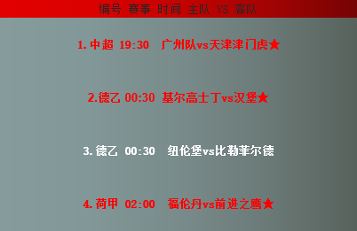 赛事前瞻:(标★赛事表示信心更佳)