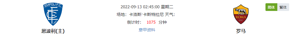看点:恩波利近期连续4场不败,此役主场作战球队状态能否延续?罗马双线作战状态不佳,此役作客能否战胜恩波利?