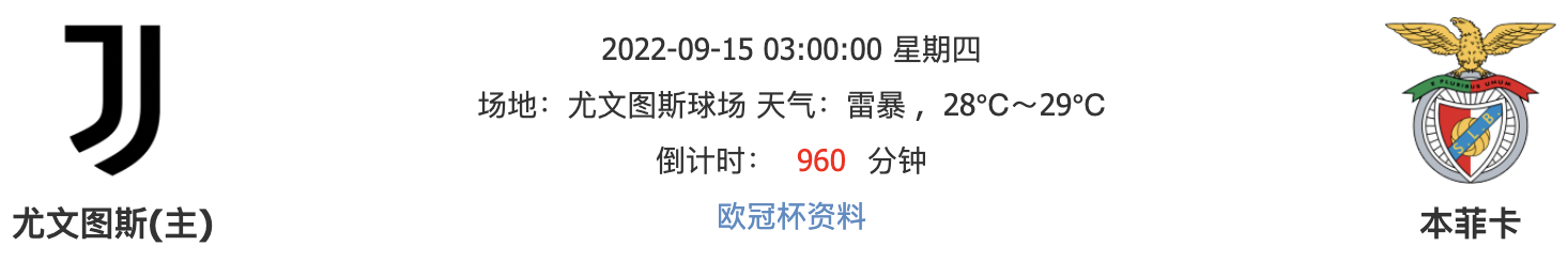 北京时间9月15日03点00分,欧洲冠军联赛的一场焦点之战,尤文图斯将在主场迎战本菲卡。尤文图斯目前势头低迷,此番能否打出好的表现?
