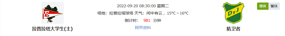 北京时间09月20日08:30,2022 阿根廷甲级联赛,由拉普拉塔大学生vs防卫者,主队拉普拉塔大学生近期主场比赛相当强势,今晚同样坐镇主场,能否取得一场胜利?
