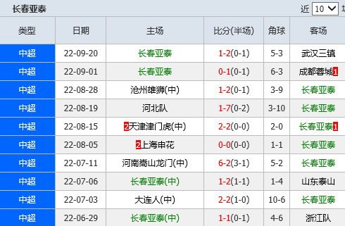 2、长春亚泰的主场毫无优势可言,此前7轮主场比赛下来,他们只是取得1胜3平3负的不佳成绩。