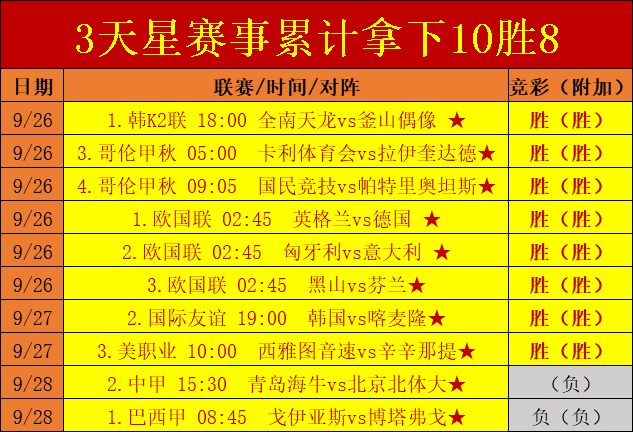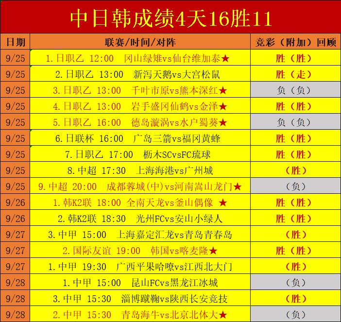 4.中日韩早场赛事近4天16胜11成绩,对中日韩早场认知清晰,胜利频繁。