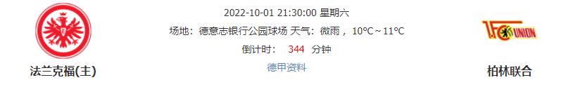 北京时间10月1日21:30,德甲第8轮比赛,法兰克福主场迎战柏林联合,法兰克福近期连续2轮各项赛事获胜,状态明显回暖,本轮主场能否延续胜绩?柏林联合新赛季至今仍保持不败,近期联赛收获2连胜,表现不俗,此役客场能否继续有作为?