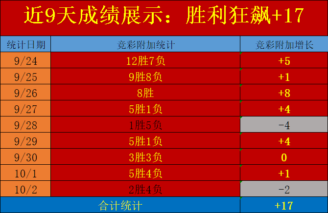 1.近9天成绩狂飙胜利+17,用优质成绩说明状态极佳;