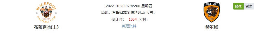 看点:布莱克浦近期进攻稳定面对强敌取得1胜1平的不俗成绩,此役主场作战能否取胜?赫尔城攻不进守不住遭遇2连败,此役作客面对布莱克浦能否全身而退?