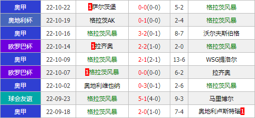 而在上轮联赛中与萨尔茨堡的“榜首对决”当中,格拉茨风暴虽然在场面上不占优势,但终究还是与对手0-0握手言和,球队在过去的9场各项赛事保持着不败的态势,整体状态较为出众!而值得提及到的是呀,格拉茨风暴在不败期间累计打入了18球之多,场均2球的进攻火力还是非常出色且稳定的。其中本赛季至今为止,格拉茨风暴阵中已有15人取得过进球的表现,可见球队在进攻端方面还是呈现出多点开花之势,进攻分布点广泛。