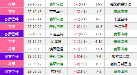 而在上轮坐镇主场迎战中游球会福图纳锡塔德的比赛里,费耶诺德全场赛事狂轰33次射门,球队在全场赛事场面上占据着极大的优势,可惜终究还是以1-1的比分与对手战成平局,无法在主场全取三分对他们而言还是失败的。不过在近10场的各项赛事,费耶诺德场均还是能够在巴西射手皮尔拉的带领下取得场均2.5球的进攻火力瀭出,可见尽管球队近期历经双线作赛的残酷赛程安排,但也足以看到球队进攻效率的高效~