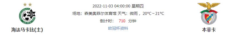 北京时间2022年11月03日04:00,欧冠杯小组赛的收官之战,海法马卡比主场对战本菲卡,双方实力悬殊,此役是否毫无悬念?我们拭目以待吧。