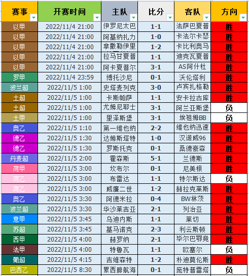 昨天数据整体表现惊人,晚场的13场有11场顺利打出,夜场的12场有9场顺利打出!昨天数据中,晚场的表现非常惊人,其中以甲的表现超出色,5场全部打出对应的高概率方向,且几乎是全部大获全胜拿下!而罗甲和波兰超继续拿下胜利,非常的给力!不过土超则是比较一般,2场一胜一负表现平稳!当然德乙的表现也是惊人的,2场都完美的拿下数据!夜场的表现也相当惊人,丹麦超主队5-1大胜对手,进球数完美的拿下,为夜场率先打开局面,非常的给力!当然波兰超的表现出色,主队完美的拿下!荷乙则是一胜一负表现平稳!另外令人惊喜的是,意甲、苏超和西甲都大获全胜的拿下数据,非常的出色!