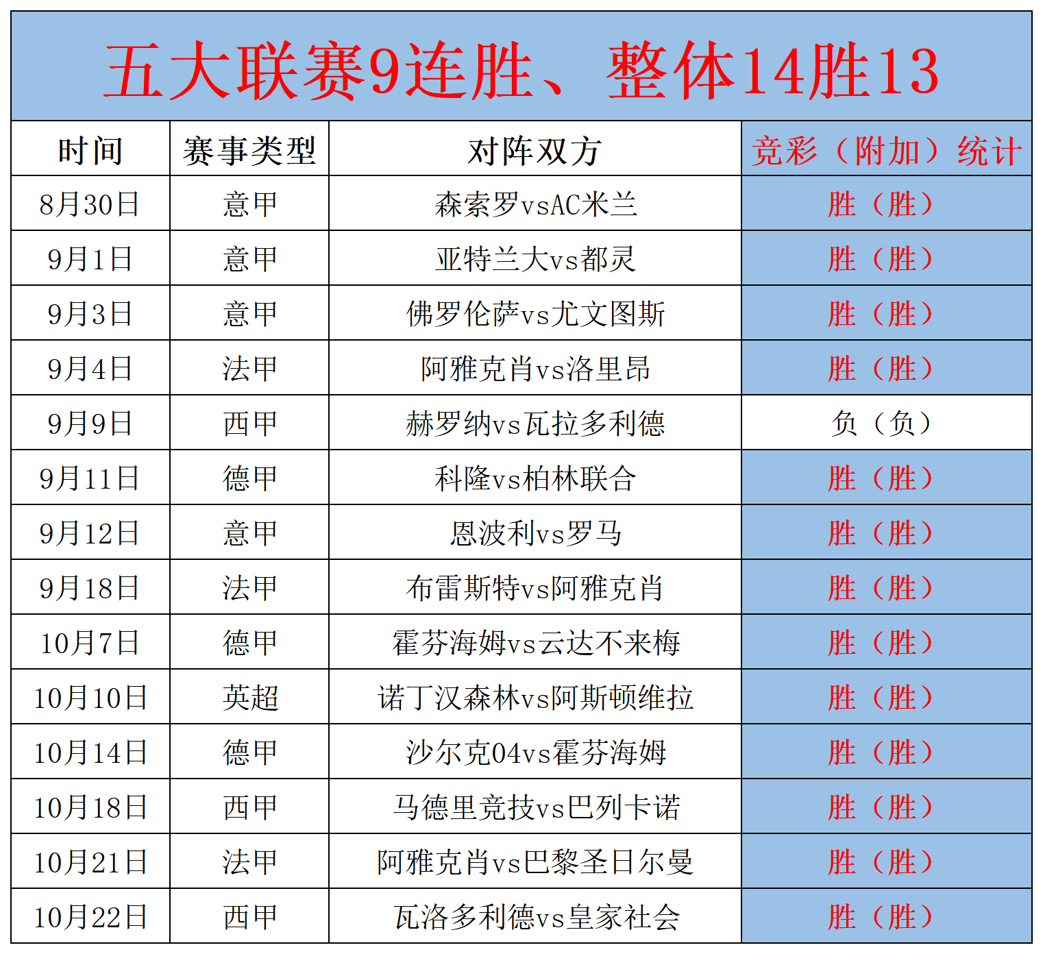 目前竞彩成绩14胜11,胜率高达79%,很遗憾昨天的中超没能拿下,近期分析中超的状态稍有不稳,所有负的赛事都是中超赛事,今天进行德甲联赛的分析,笔者对五大联赛分析实力十分到位,近期五大联赛已经拿下了14胜13的佳绩,目前9连胜,其中德甲3连胜。