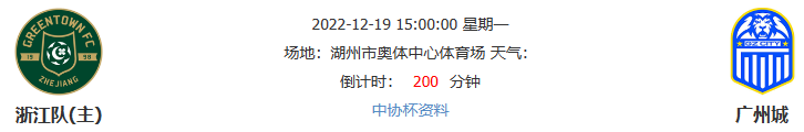 北京时间12月19日15点00分,22-23中协杯第三轮的一场比赛,广州城将前往湖州市奥体中心体育场与浙江队展开较量。中超接近尾声,广州城目前还在为保级苦苦挣扎,本轮中协杯,其客场发挥不宜高估。