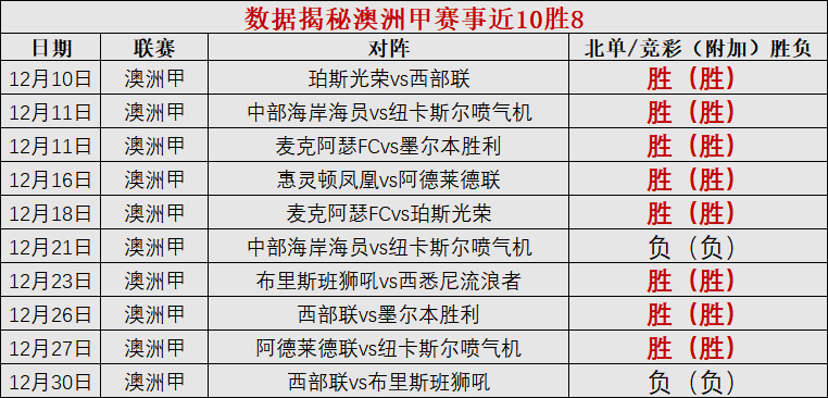 数据揭秘昨日澳洲甲赛事,西部联虽在比赛尾声追平比分,可惜没能反超,此战没有顺利打出。近期成绩精选5胜4,澳洲甲近10胜8。数据将会继续努力不断突破!今天再次选取信心澳洲甲赛事进行详细分析!