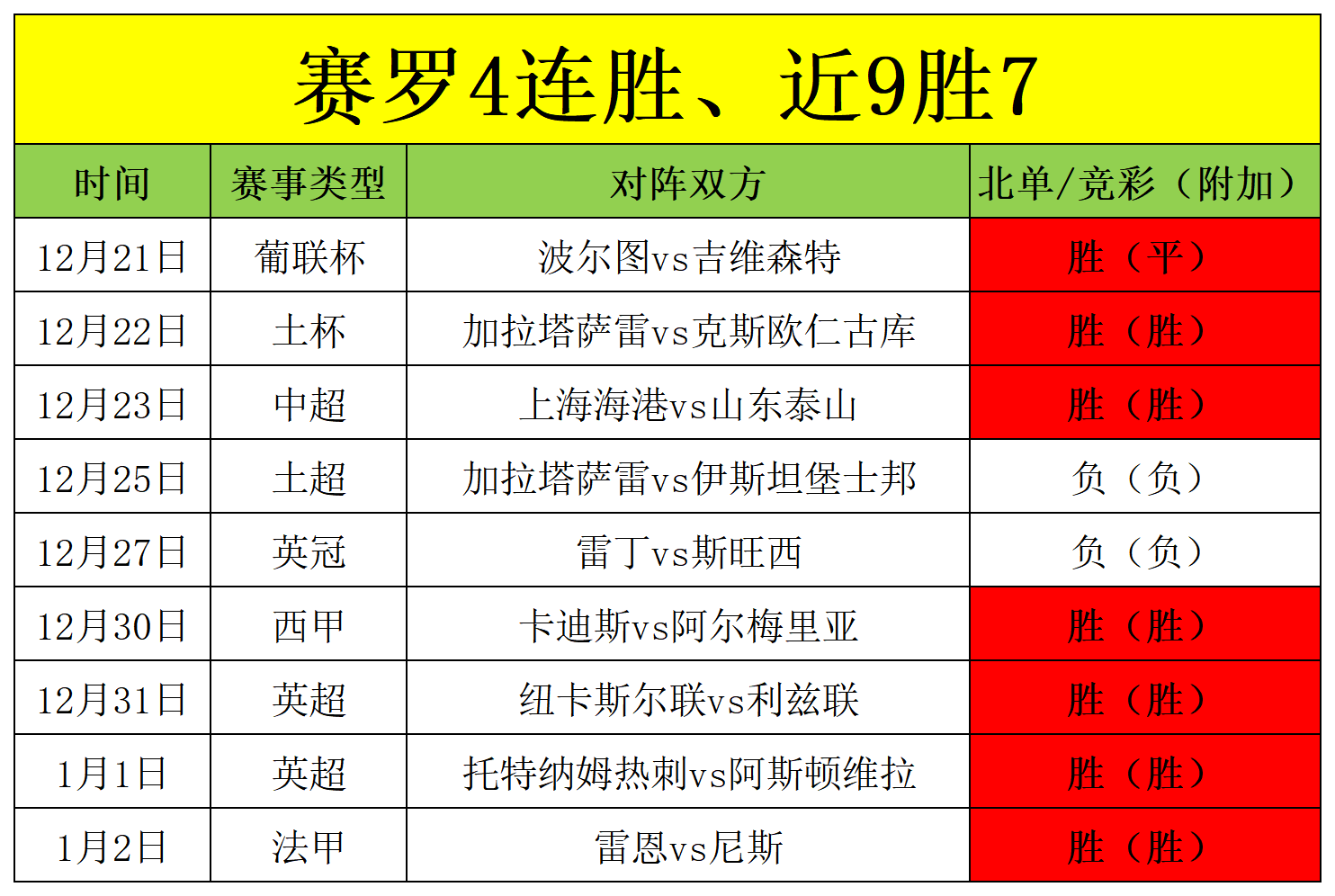 昨天的法甲雷恩2-1尼斯,笔者分析的主队方向竞彩参考和附加参考双双打出,近期成绩9胜7,目前4连胜,笔者状态正盛,今天继续信心出击,冲刺5连胜。
