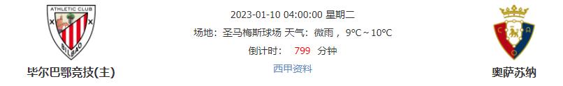 北京时间2023年01月10日04:00,西甲迎来第16轮赛事,毕尔巴鄂竞技vs奥萨苏纳,两队今季的表现相差无几,过去10次交锋也是平分秋色,那么今晚的比赛究竟谁更胜一筹呢?我们一起来看看。